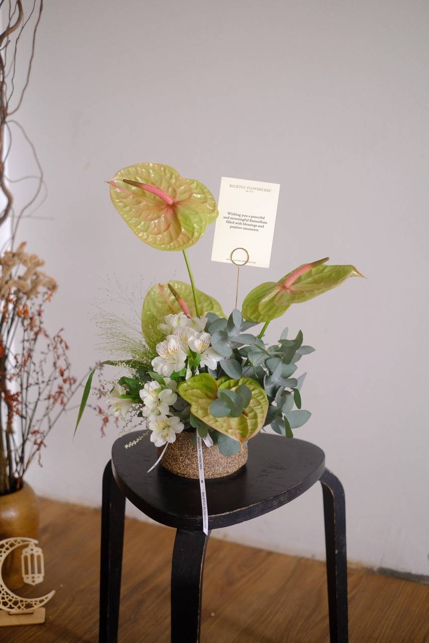 Fresh green blooms in a sleek vase, bringing peace, blessings, and a festive glow to your Ramadan home
