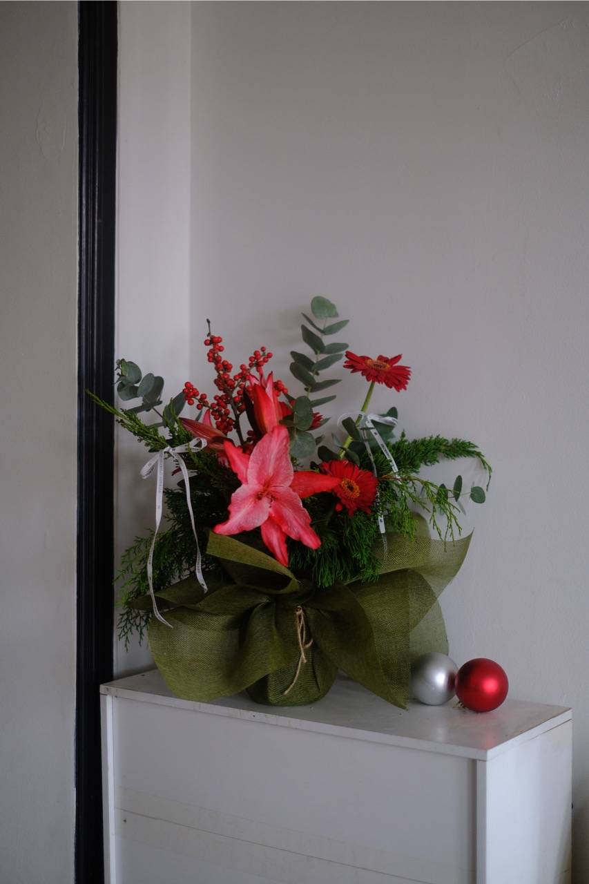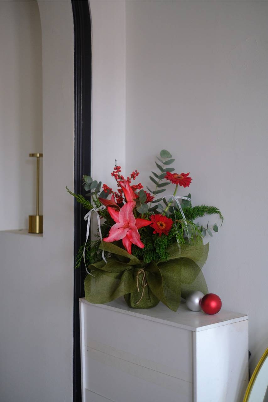 A harmonious arrangement of red and green blooms, radiating timeless Christmas elegance. Its lush composition captures the joy and festive spirit of the season. Makes a lovely Christmas gift for someone you care about, or a sophisticated way to add seasonal charm to your home.