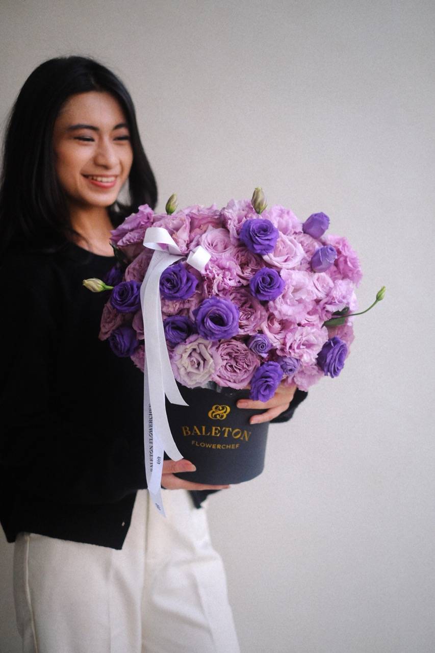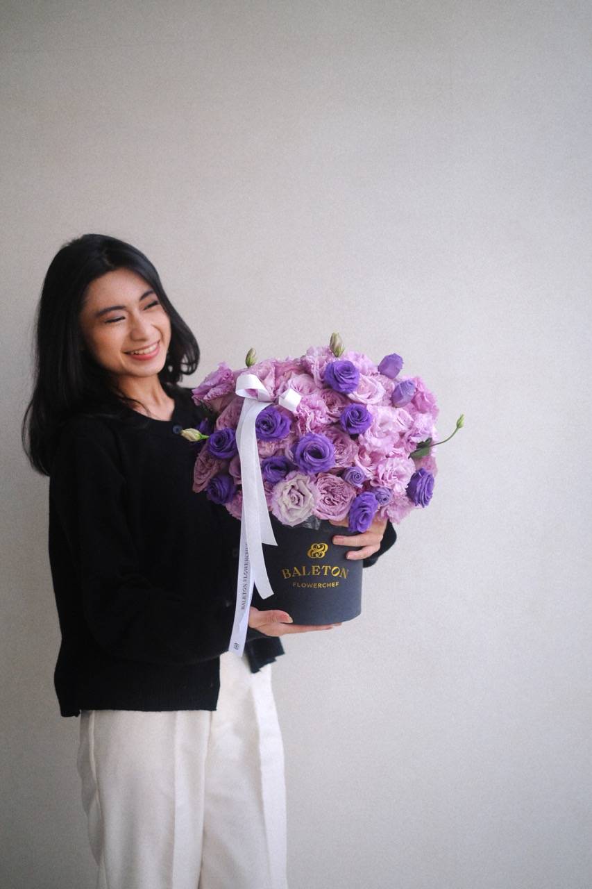 Round purple petals i n gentle harmony. Wrapped i n purple to honor bonds built o n loyalty, quiet support, and being there without needing to b e asked.