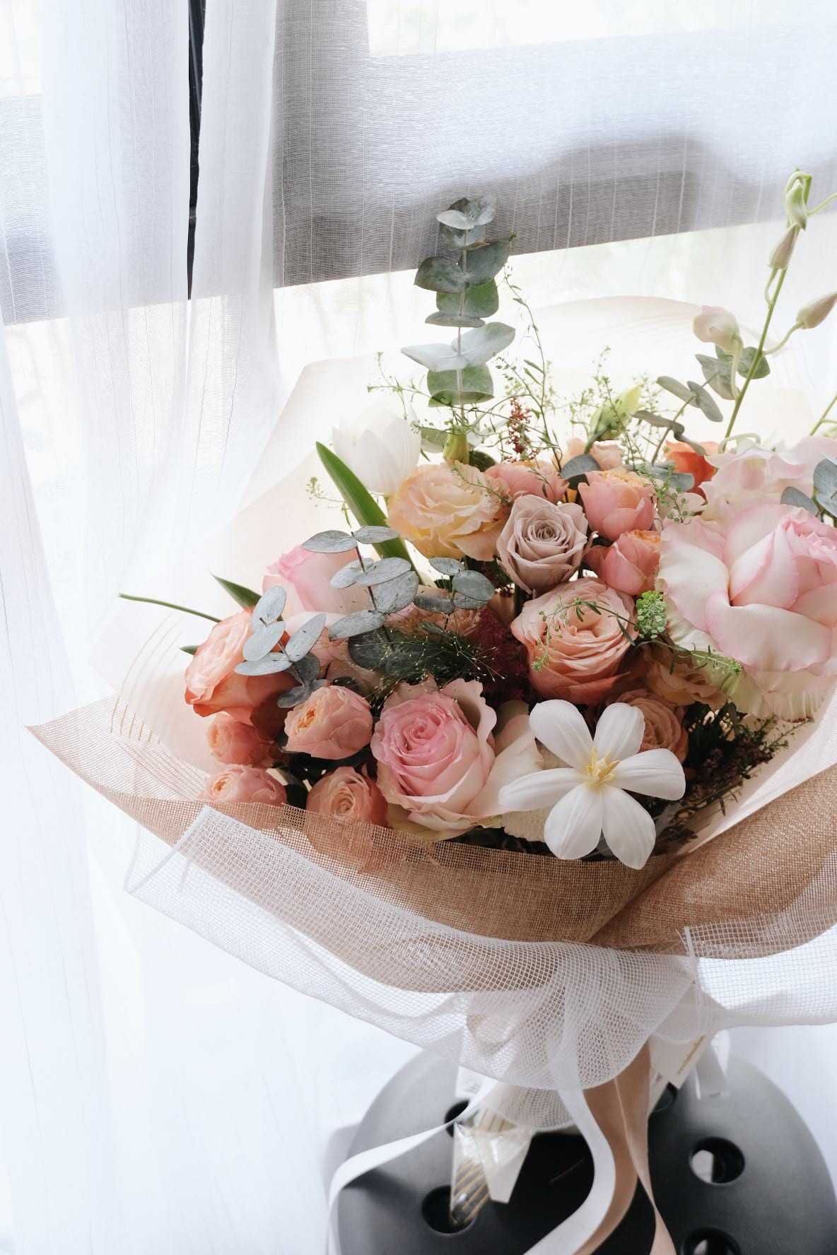 Yes you can see our favourite Ecuador roses there. When you see Esperance and Kahala in one bouquet with other coordinated flower colour, isn’t so amazing? Elegant and yes so calming, this is very recommend for whoever looking for giving their parents or grandparents or anyone.