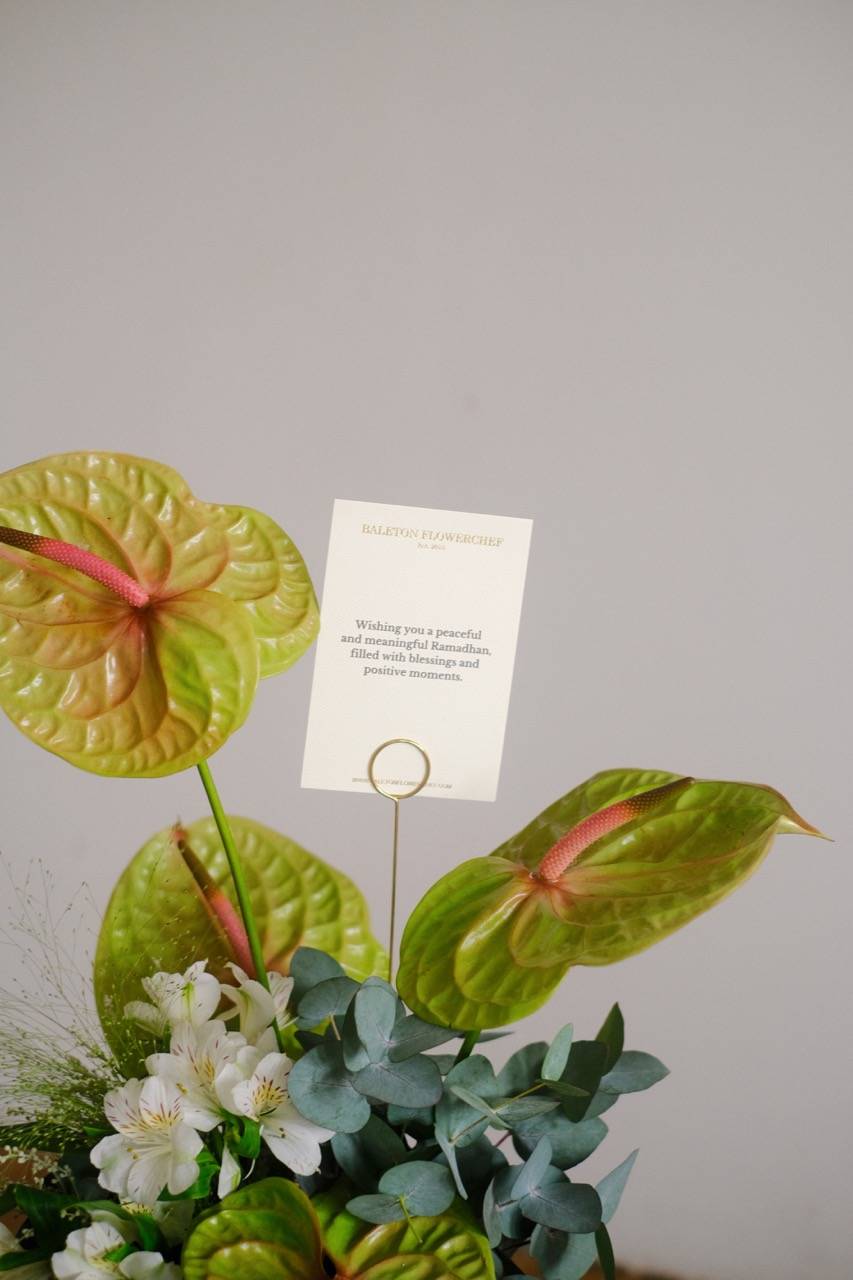 Fresh green blooms in a sleek vase, bringing peace, blessings, and a festive glow to your Ramadan home