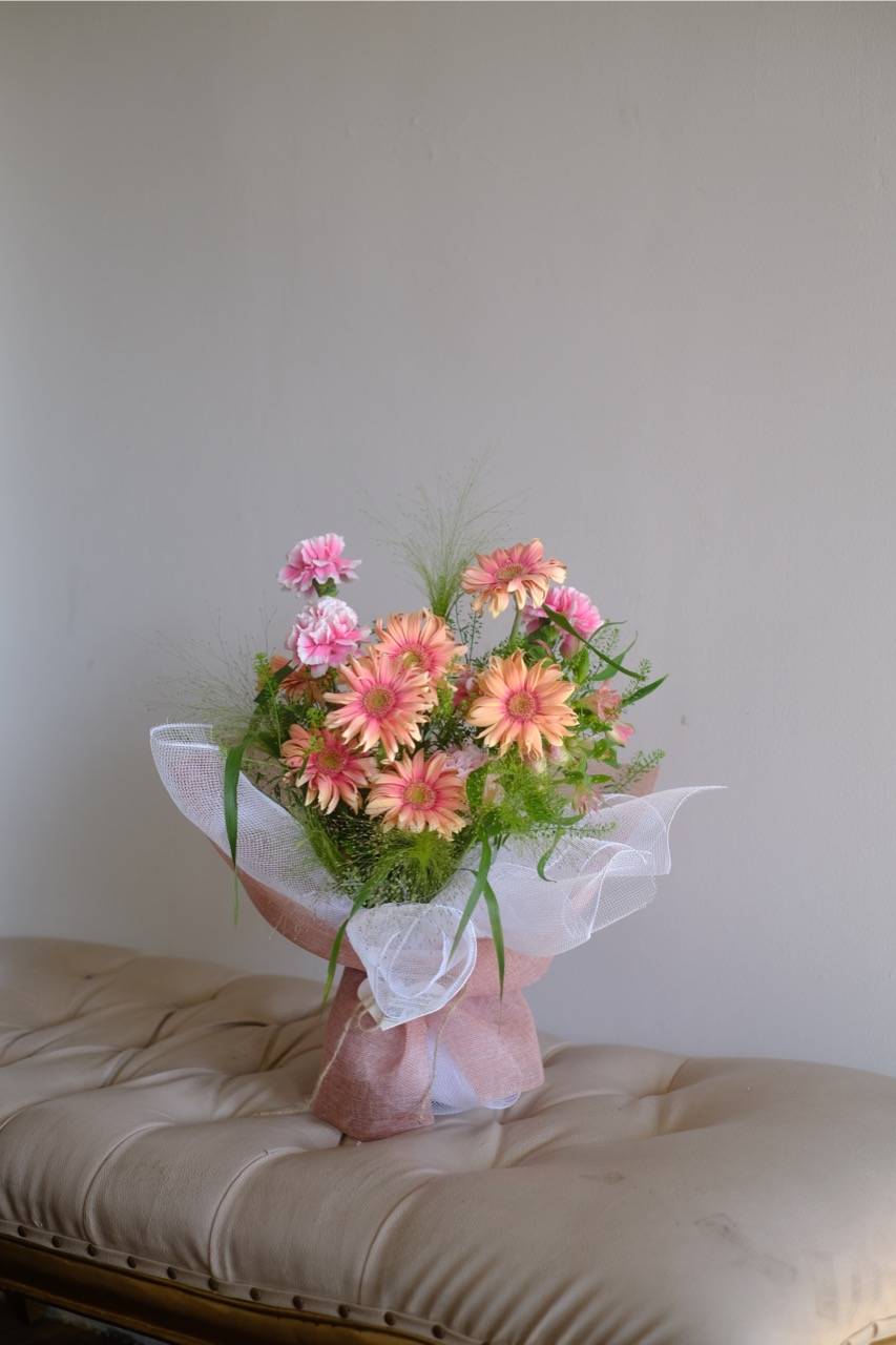 A fresh and elegant gerbera arrangement styled in a vase, perfect for brightening desks, tables, or cozy corners.