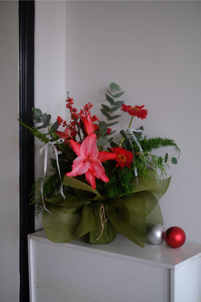 A harmonious arrangement of red and green blooms, radiating timeless Christmas elegance. Its lush composition captures the joy and festive spirit of the season. Makes a lovely Christmas gift for someone you care about, or a sophisticated way to add seasonal charm to your home.